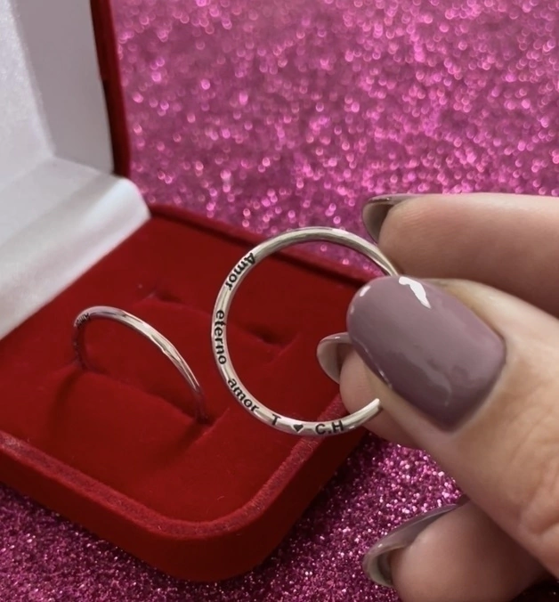 Gravação no aro: estão incluídas as gravações nos aros, nomes, dados de nascimento ou algumas frases já selecionadas: