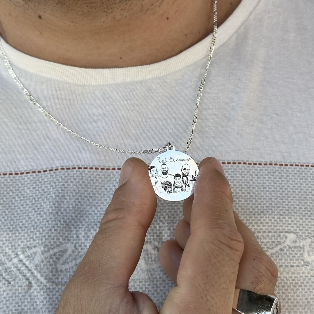Nosso pingente artesanal, com aproximadamente 2 a 2,1 cm, é confeccionado à mão em prata de alta qualidade, garantindo sofisticação e durabilidade. Envie a foto desejada pelo nosso WhatsApp e transforme os desenhos e rabiscos da infância em uma arte única e cheia de significado.